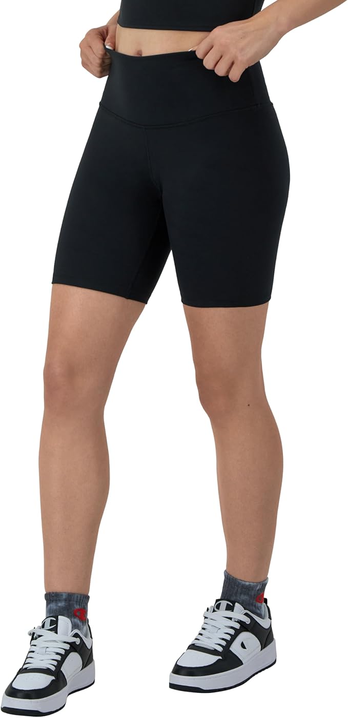 Champion, Soft Touch, Moisture Wicking, Pocket Leggings for Women, 7" & 25", Black Bike Short, Large